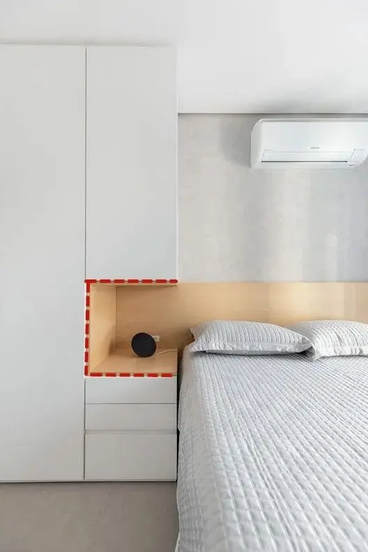 总之,如果需要考虑卧室的收纳功能,不妨试一试利用床头背景墙的空间进行收纳,选择一种合适的收纳方法,床头柜都可以省去了!