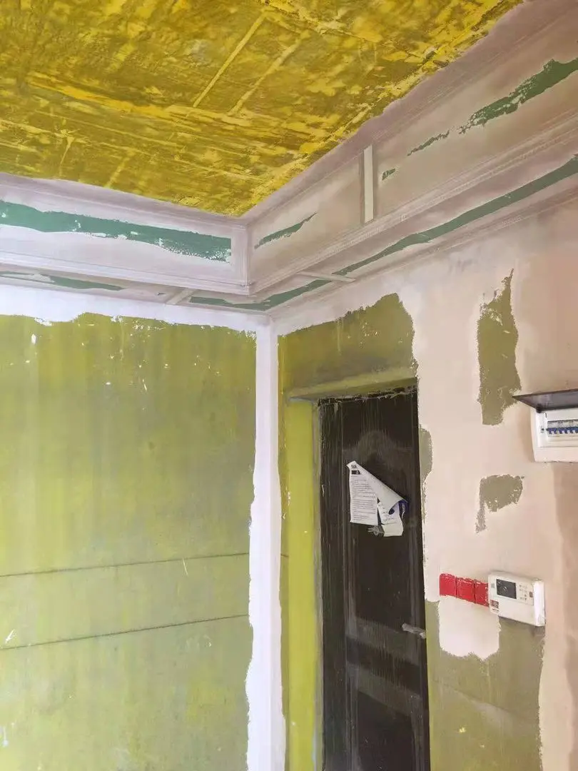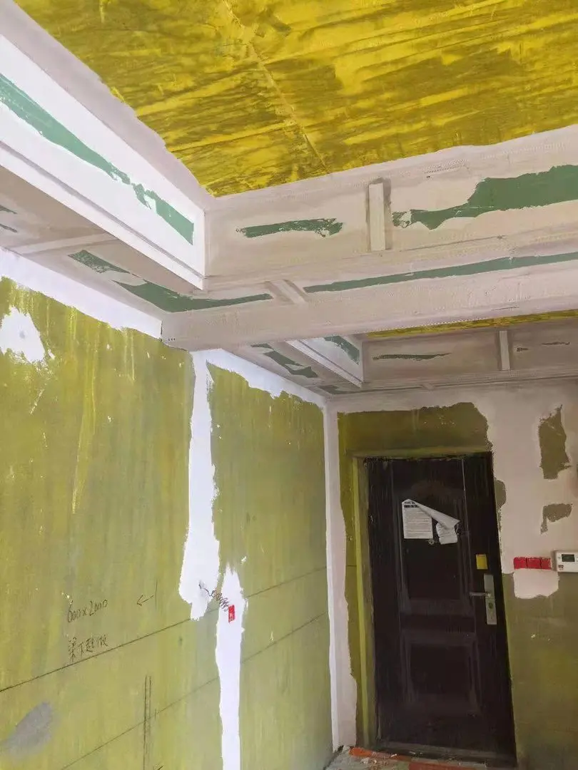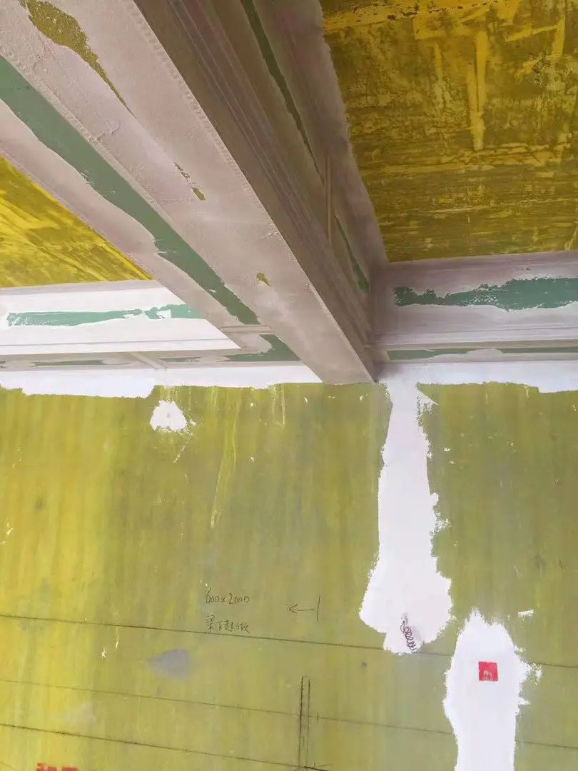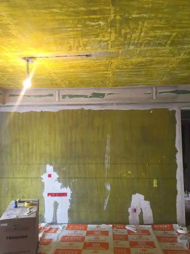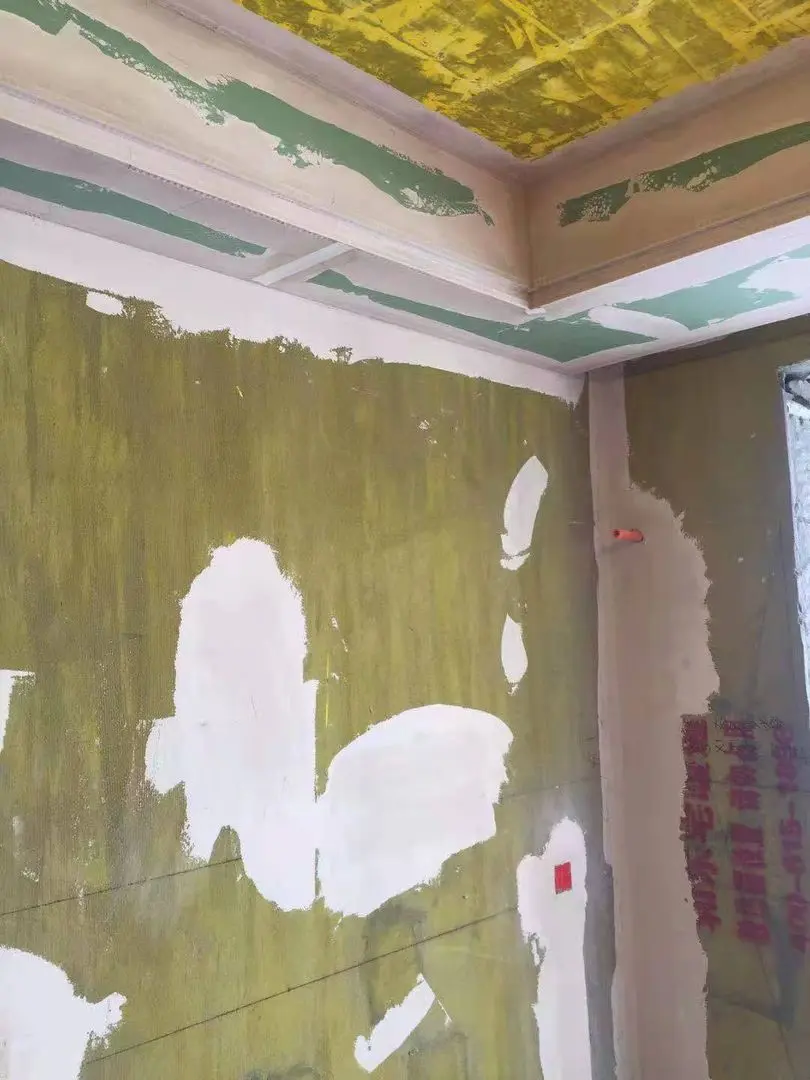 第四、第一次的刮涂不要太厚,避免腻子的收缩过大,导致出现开裂和脱落的情况,跨墙腻子的厚度以0.5到1毫米为佳,师傅说,第一遍需要四到五天,期待最终效果。