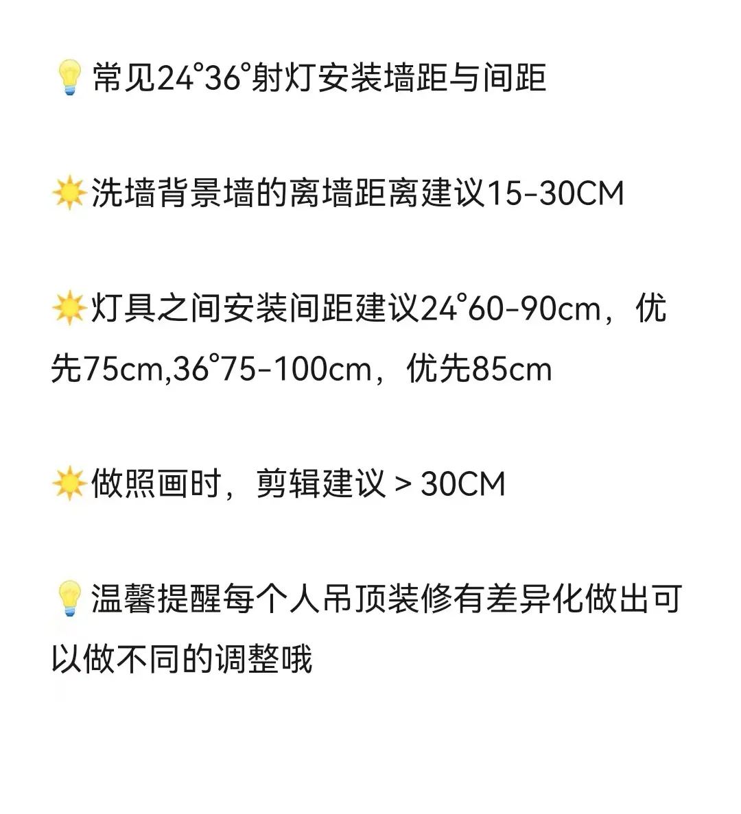 最后就是灯具与墙距,适当的环境氛围对实际的间距也是有一定的关联的