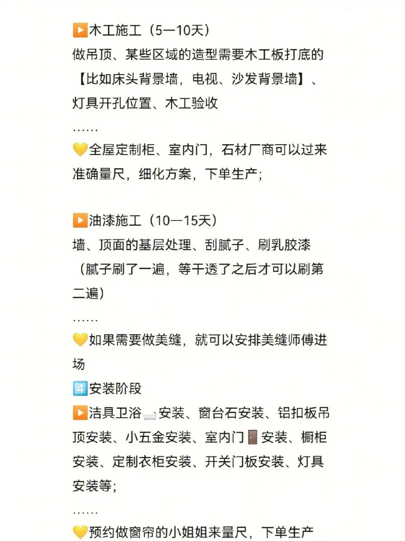 保姆级的装修攻略,四张图完全搞定、新手小白照着装修不会出错,全部装修流程,什么时间点做什么,一清二楚,希望对大家有用、