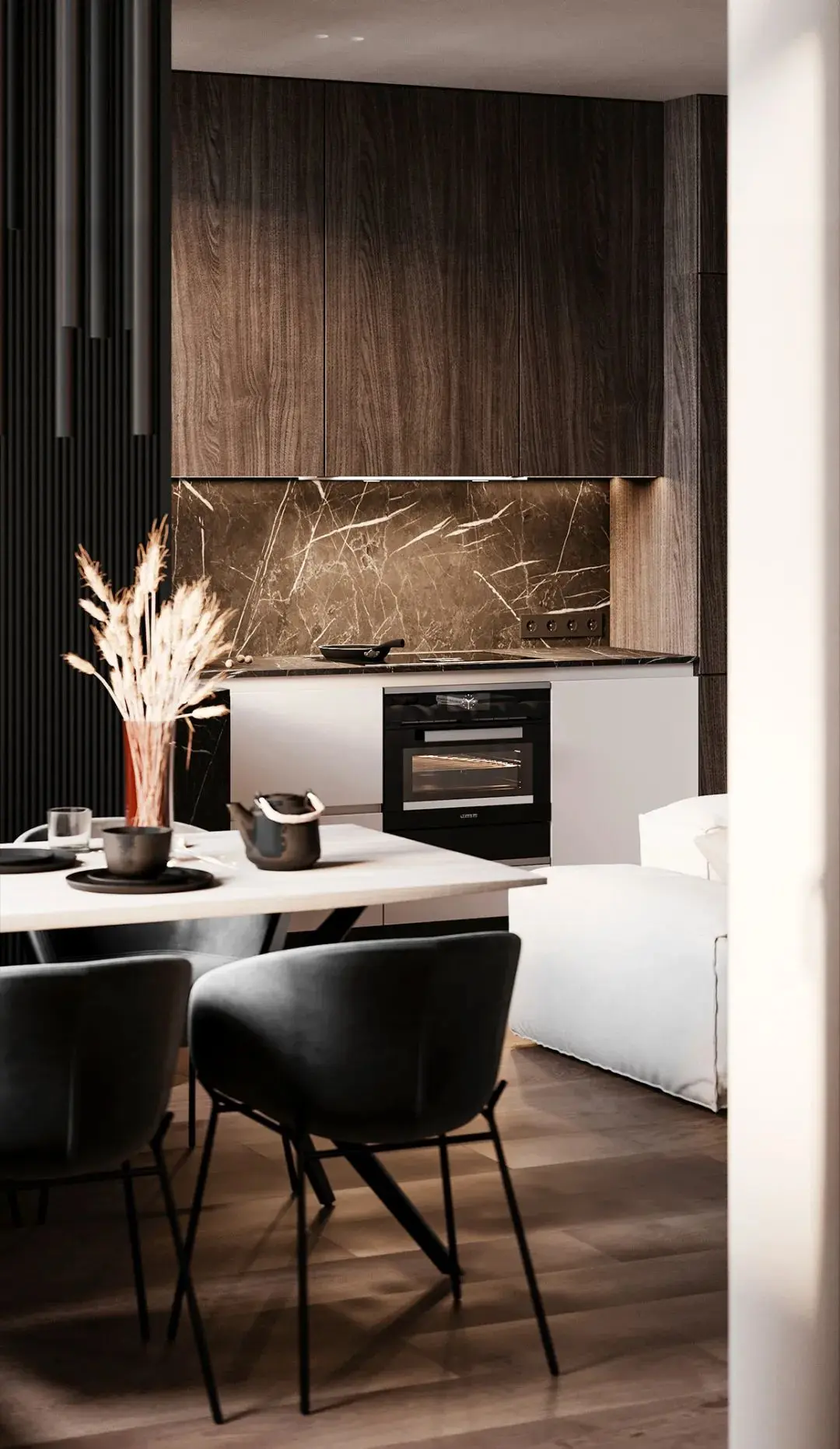 客厅厨房一体,功能与气质上的需求又相结合,