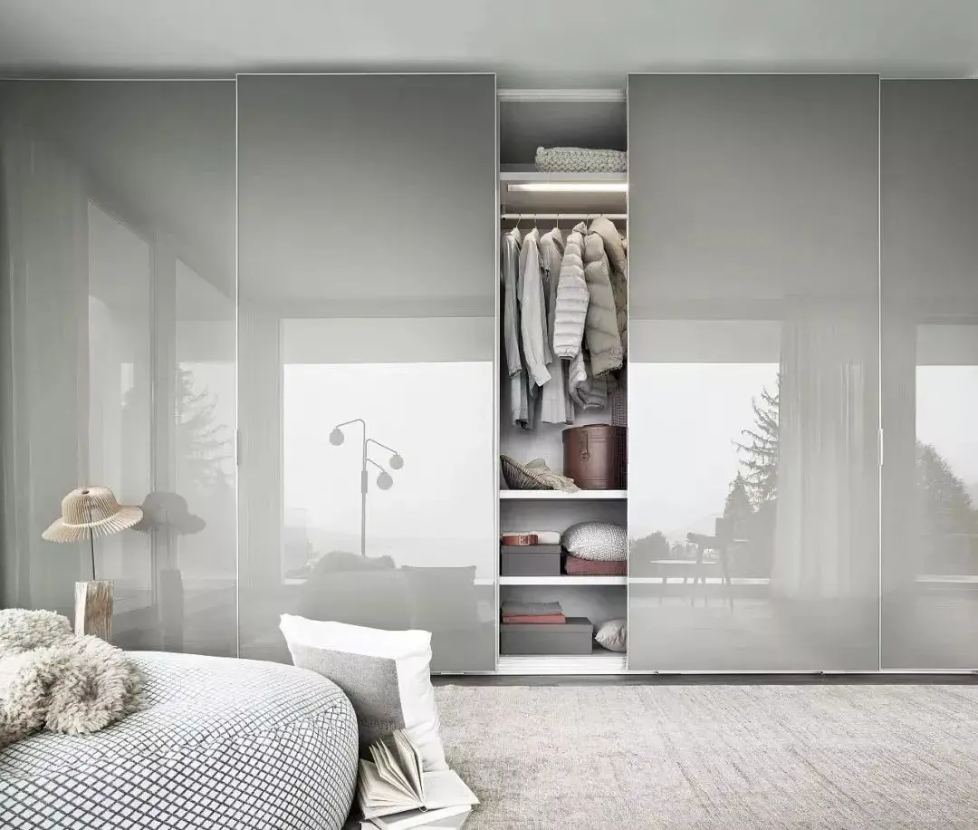 推拉门衣柜主要利用直线上的空间,柜门的开启闭合占据的是滑轨的面积。因占地面积较少,所以其极受小户型业主的青睐。