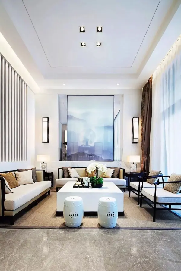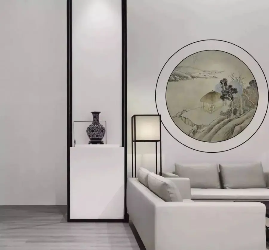 把背景墙换成瓷艺水墨画,既有意境,也不会褪色,风格简约美观。