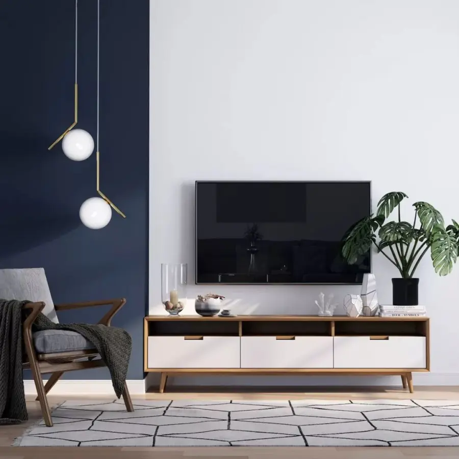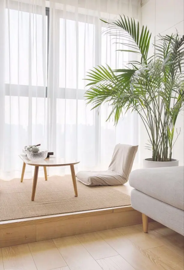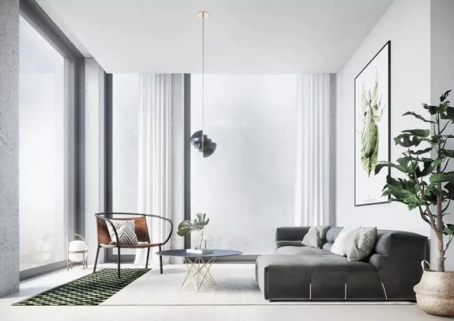 如果想让背景墙变得更丰富,摆上一两盆绿植,有了绿植的加持,客厅立马充满活力。