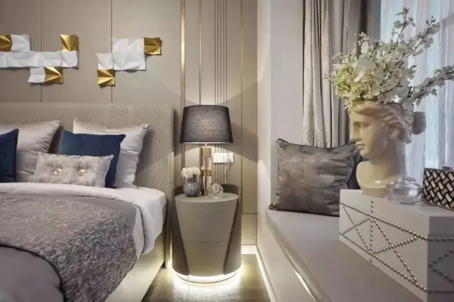 两张床之间除了能放下两个床头柜以外,还应足够让两个人自由走动。当然床的外侧也不例外,这样才能方便的清洁地板和整理床上用品。