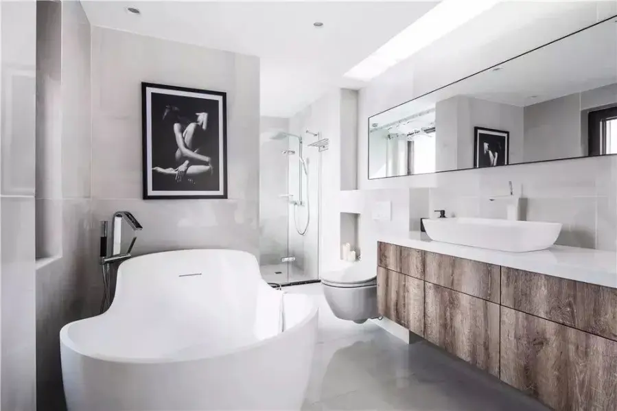这样的距离是在中间活动的最佳距离,即使浴室很窄,也要在安装浴缸时留出走动的空间。总之浴缸和其他墙面或物品之间至少要有60厘米的距离。
