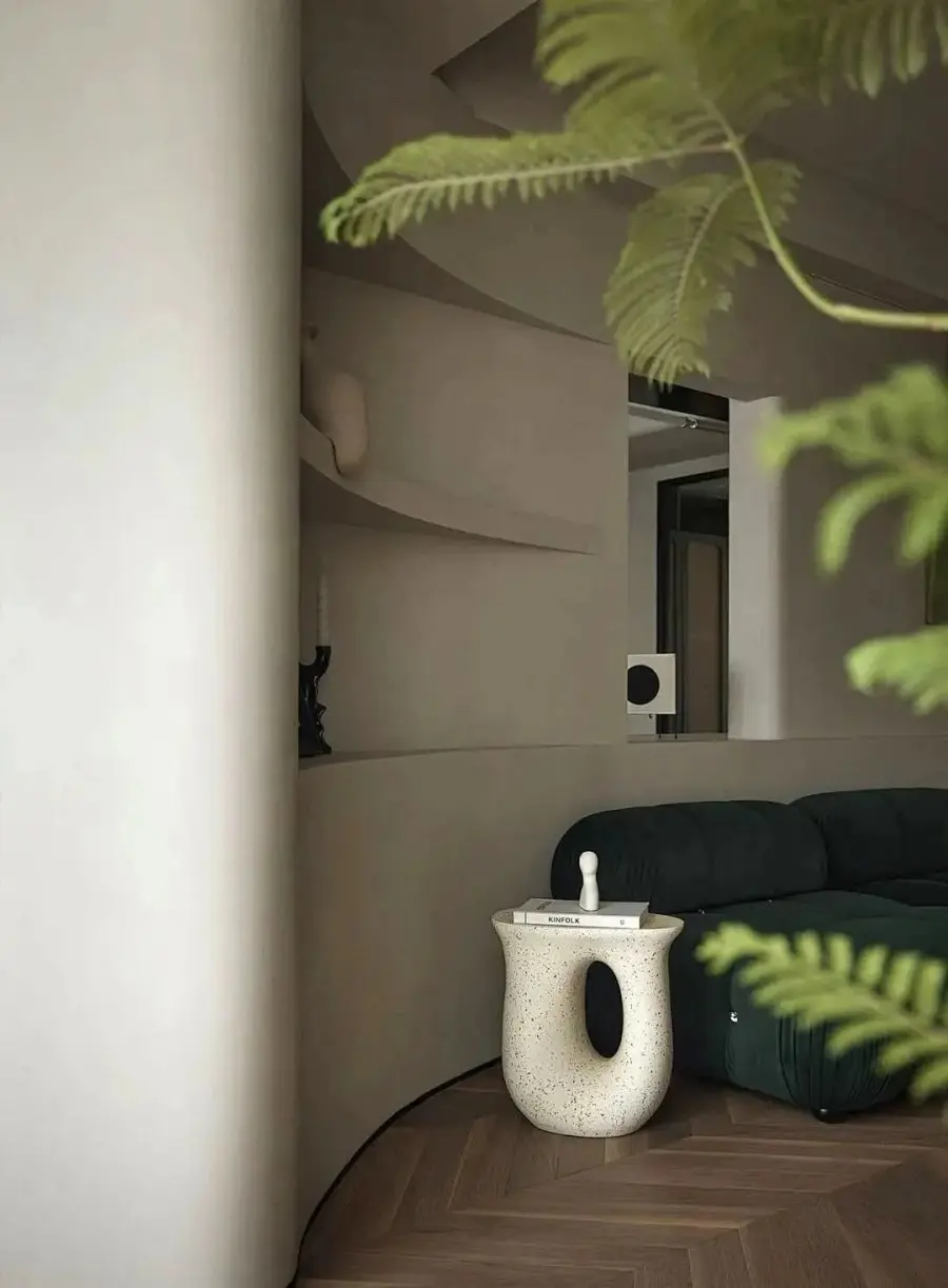 打通阳台巧用弧形过渡,同时墙面增设壁龛可以置物。