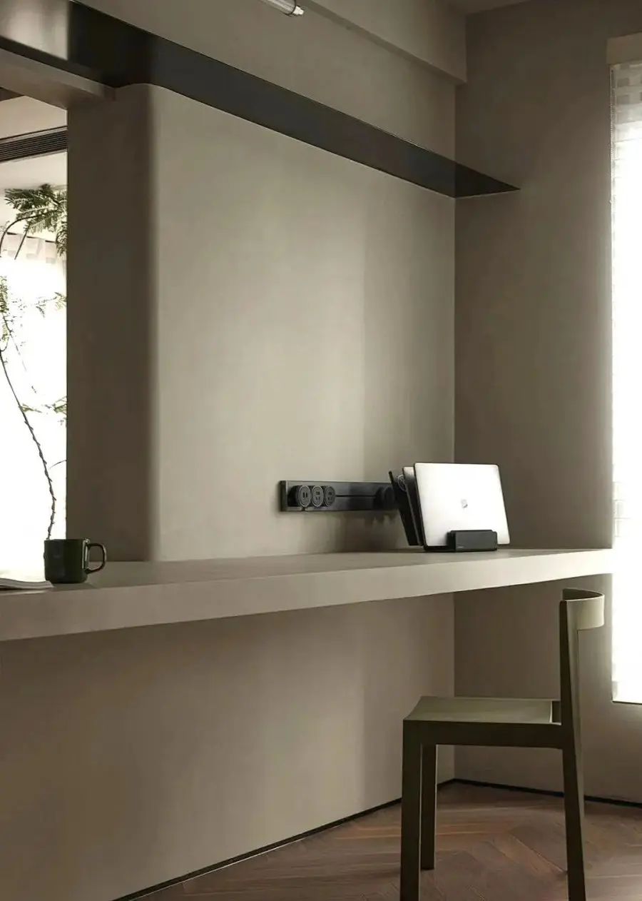 书桌上方安装轨道插座,方便电脑、台灯等使用。