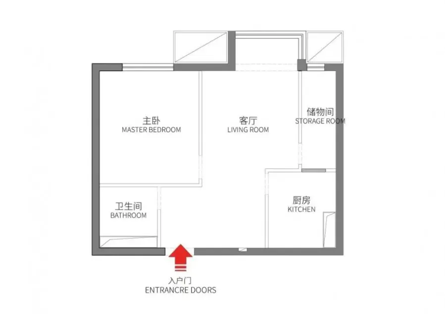 ▲ 本案套内面积45平,这是一套学区房改造,业主夫妇将和女儿、儿子在这度过至少6年的时光,这套房自然也会陪伴两个小朋友最重要的成长阶段;房子是个典型的方正一居室,小得非常明显:站在门口,一眼到头;要住下业主一家四口,两个小朋友还需要有各自的私密空间,一卧扩三卧是刚需诉求,夫妻俩也希望公区能够宽敞一点,一家人能聚在一起多些互动;如何平衡好四口人的居住尺度,放下三间卧室,是本案平面配置的难点。