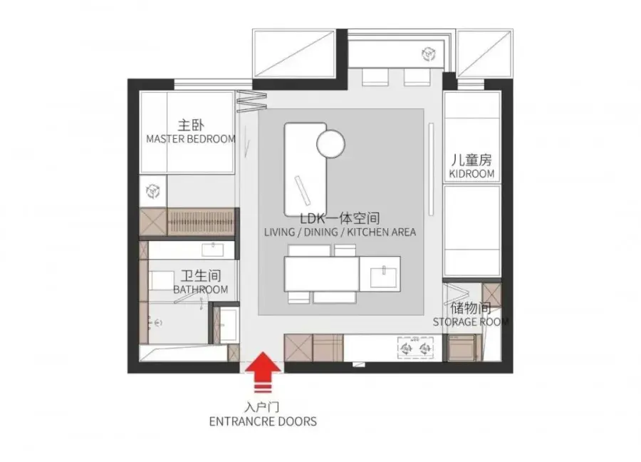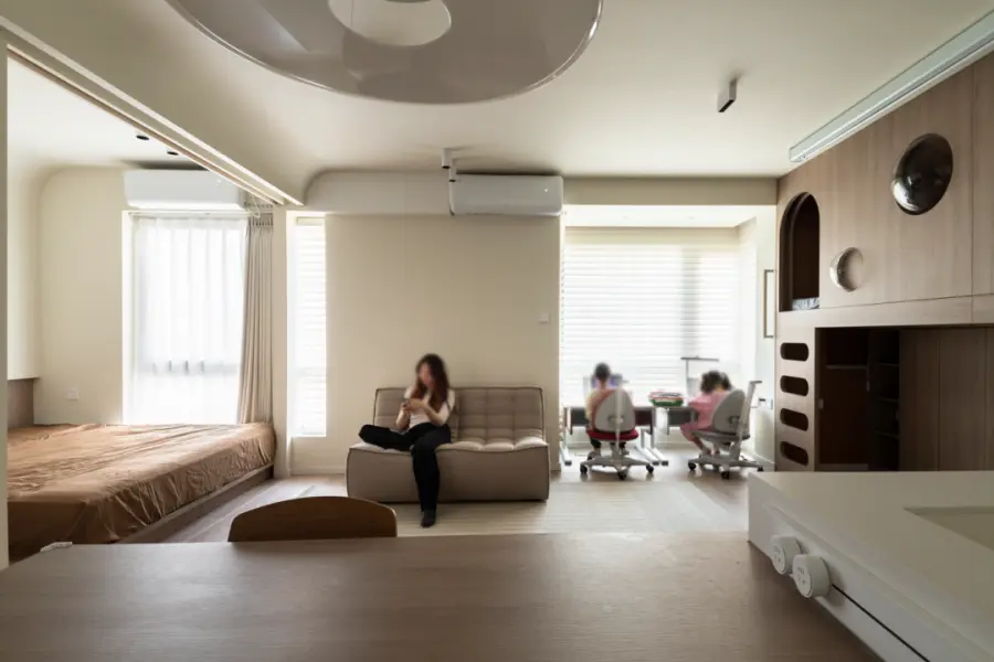 ▲ 适当缩小了主卧,将公区地面面积尽可能扩大,同时弱化餐厨的边界感,打造客餐厨一体的LDK布局,化零为整,让一家人能有更多的互动空间
