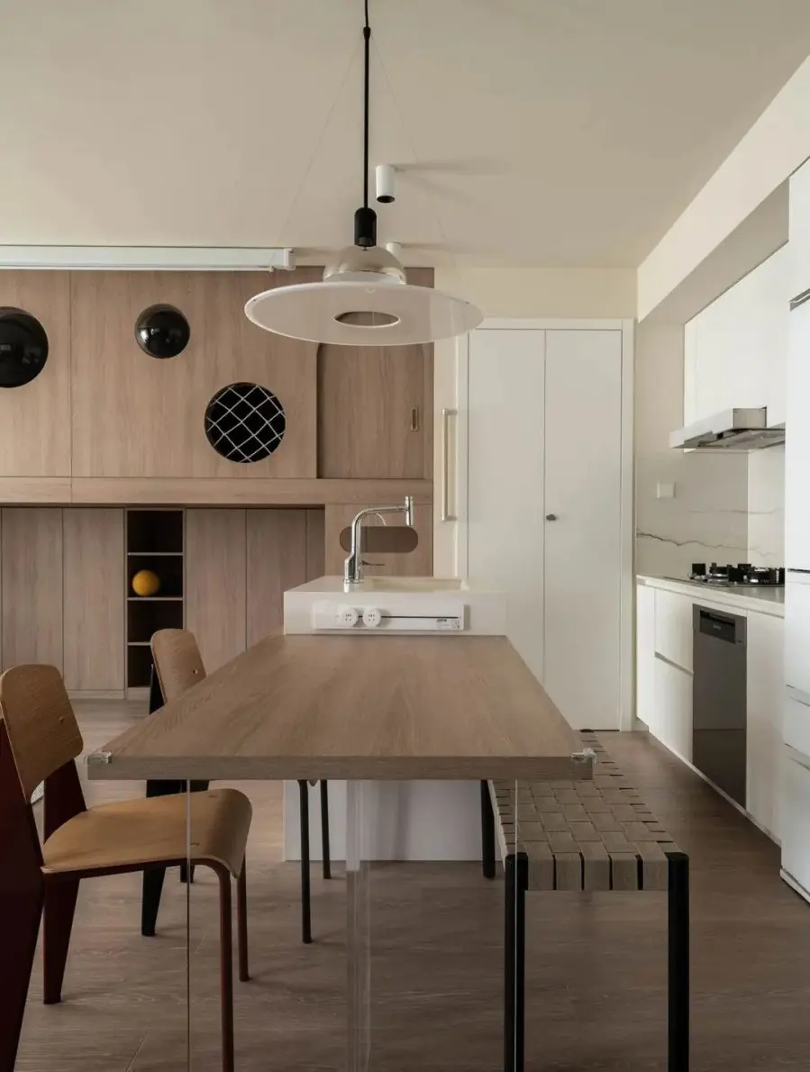 ▲ 餐区可供四人同时使用,厨房一侧特意选了&tradition的藤编条凳代替传统餐椅,让过道更宽敞