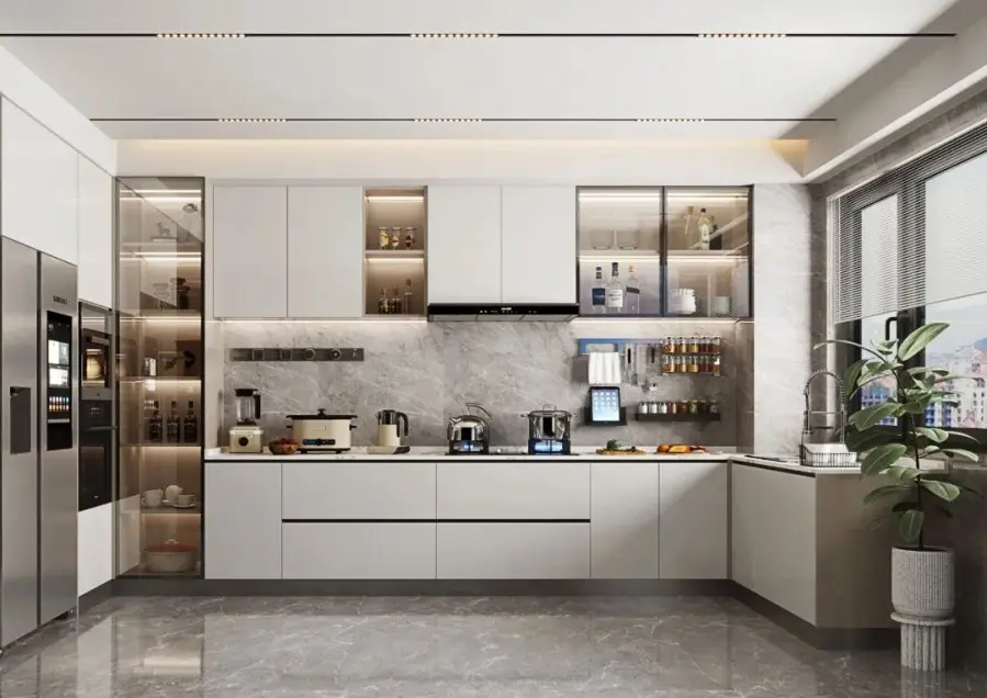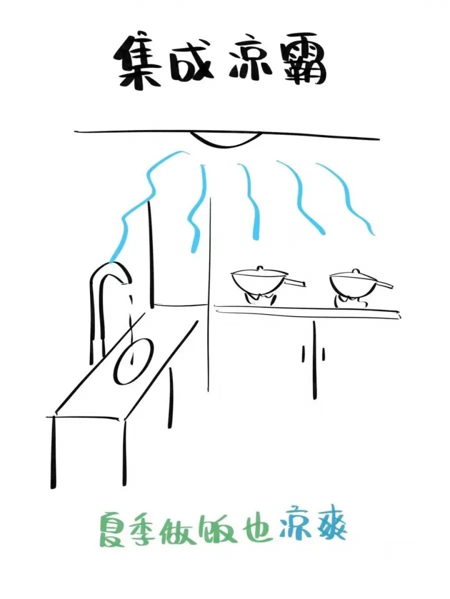 厨房由于油烟很重无法做空调,夏季做饭时温度又特别高,这时可在吊顶内集成一个凉霸,用来夏季制冷。