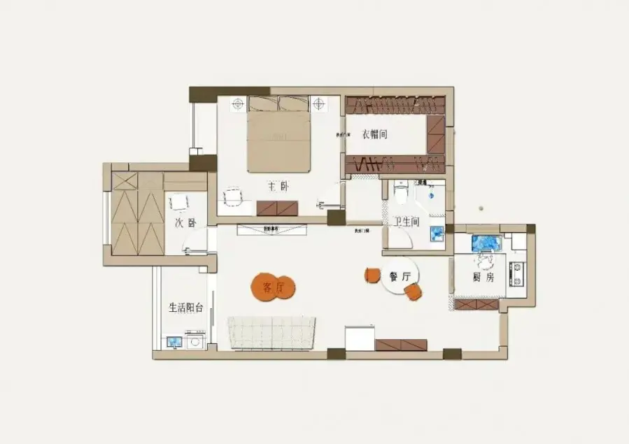 ▲ 屋主常住2人,只留一个卧室即可满足需求,将北次卧改为衣帽间,靠窗位置作为梳妆台