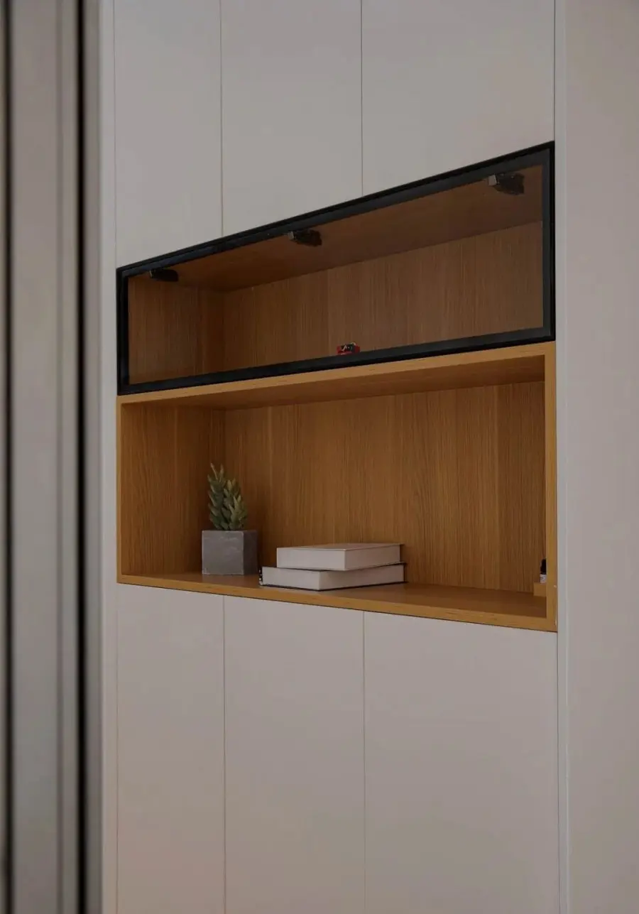 ▲ 吊柜下方延伸出开放格,可以放常看书籍和摆件装饰