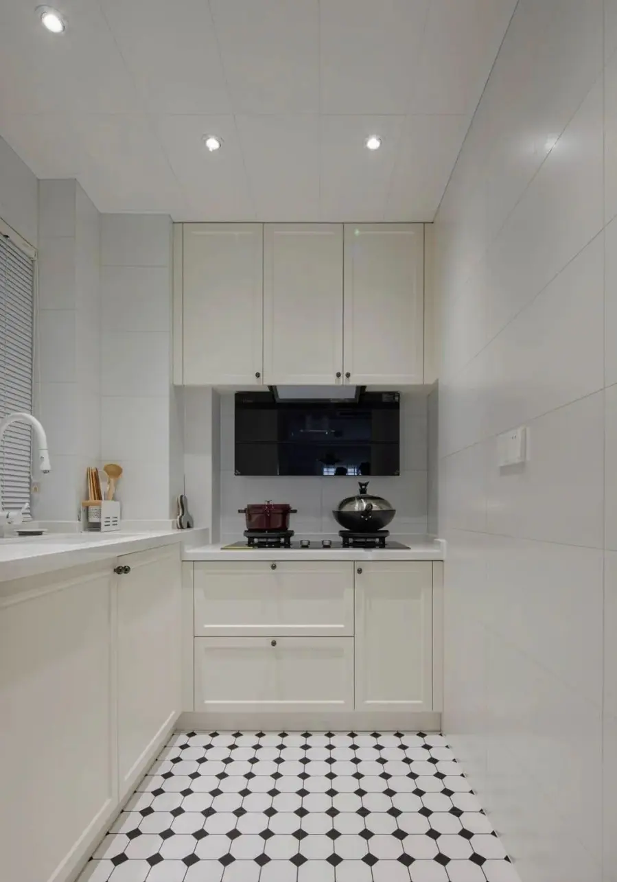 ▲ 大面积白色的运用也让小厨房更显大,高低台设计符合人体工程学