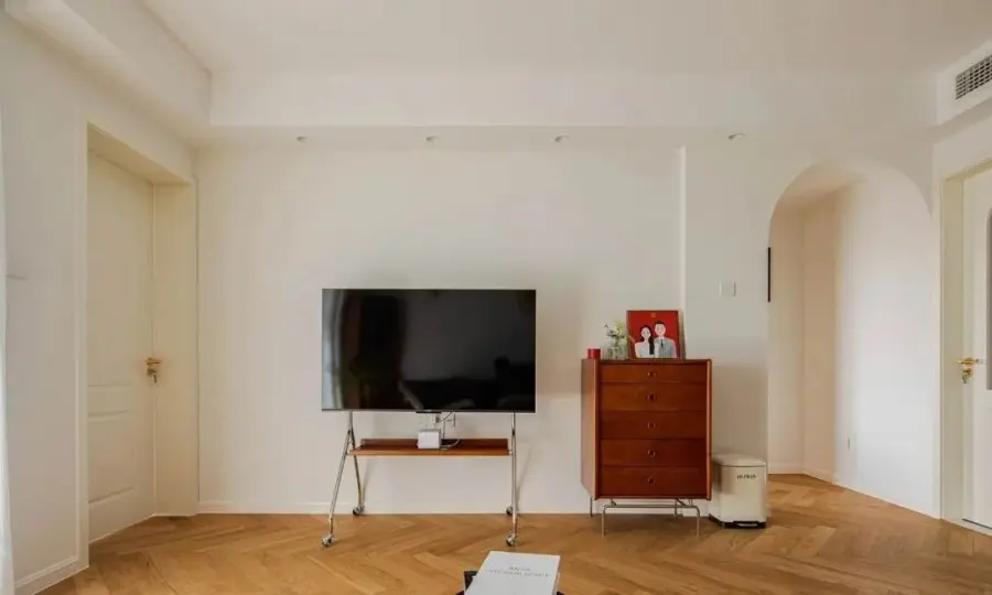 ▲ 屋主对于观影体验的要求比较多元化,既想要更清晰的画面感,又想要影院级大屏幕的观影体验,一直纠结不下,最后选择了可移动电视+投影这种性价比较高的方式,白天打开电视不受光线影响,晚上使用投影体验家庭影院的爽感,留白电视墙直接充当投影幕布使用