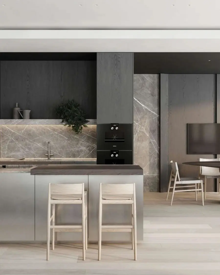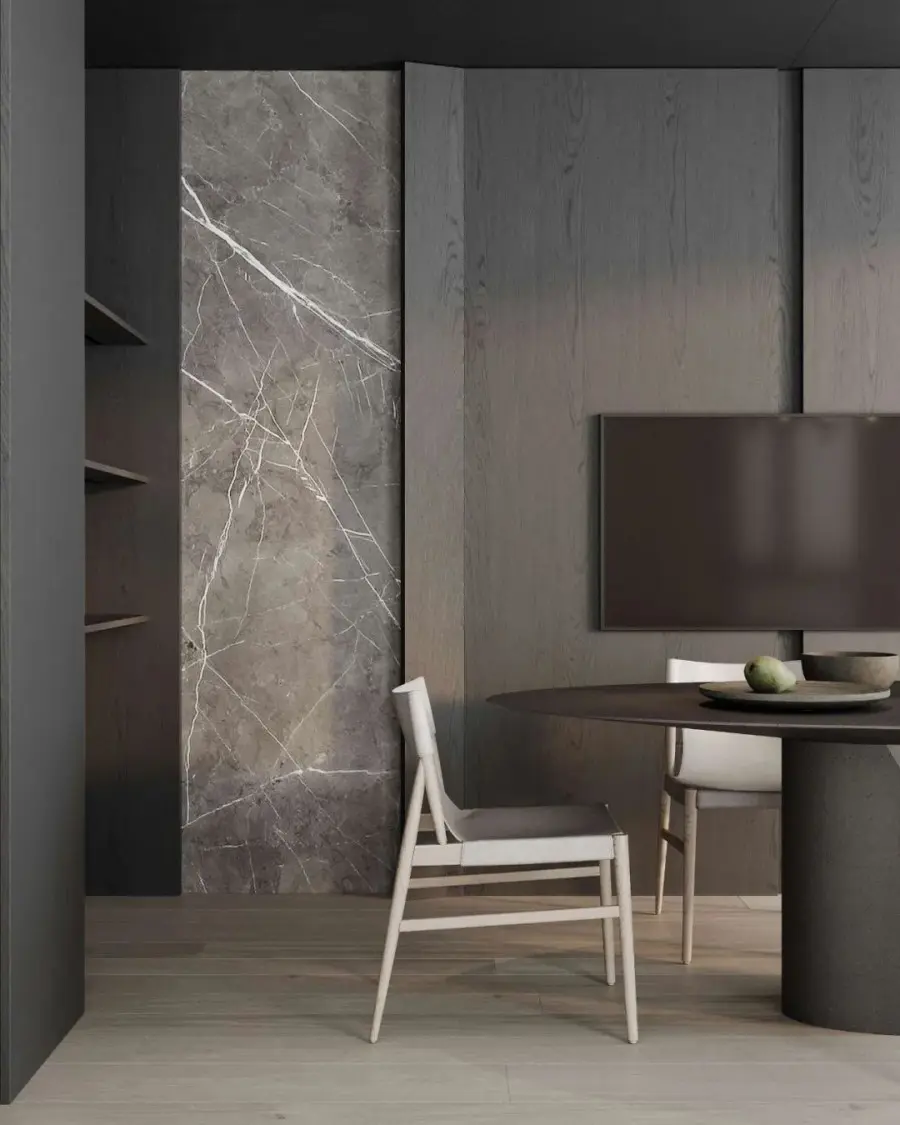 设计师新作,135㎡现代简约住宅设计,设计师从日常生活尺度出发,以多种材质拼接,在生活、空间与美学中寻求一种诗意的平衡。