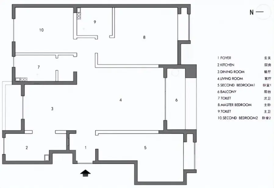 原户型图:原户型结构布局很合理,承重墙不影响重新设计,装修重点在于梳理屋主需求,打造符合屋主生活需求的居住空间。