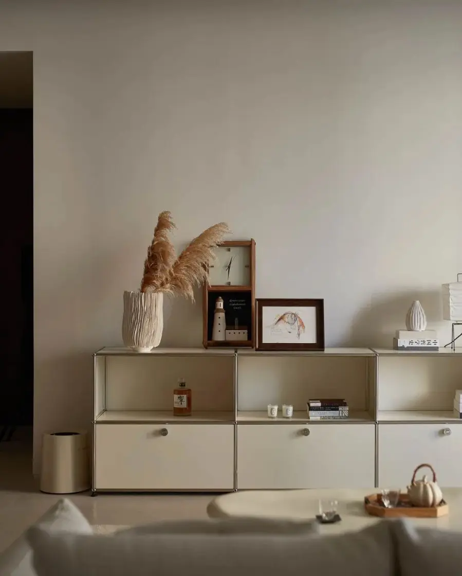 ▲ USM边柜靠墙摆放,赋予软装搭配更多的发挥空间,以精美物件装点出独一无二的生活仪式感