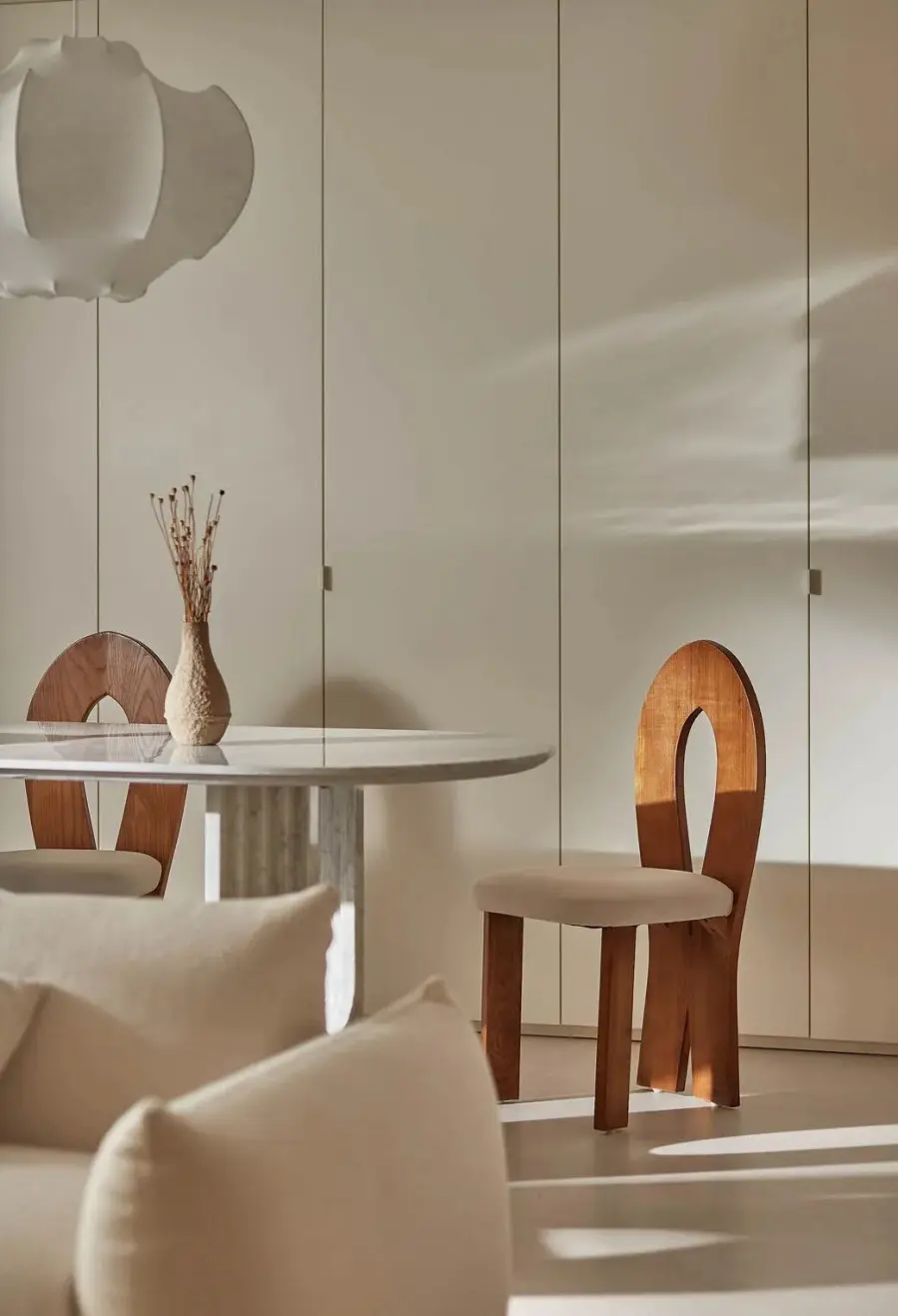 ▲ 风格设计贴合屋主的需求喜好,大面积留白奠定干净简洁的空间格调,奶油色系打底,精致优雅的家具营造出浪漫的轻法式氛围,给人一种岁月静好的惬意感
