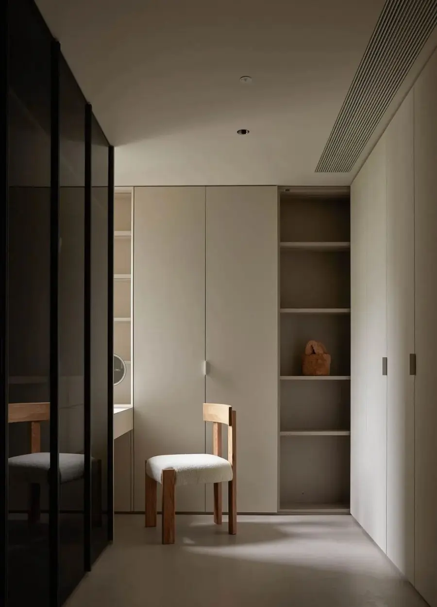 ▲ 将一间卧室改造成独立衣帽间,一门到顶的设计简洁美观,丰富的柜体形式满足不同的储物需求