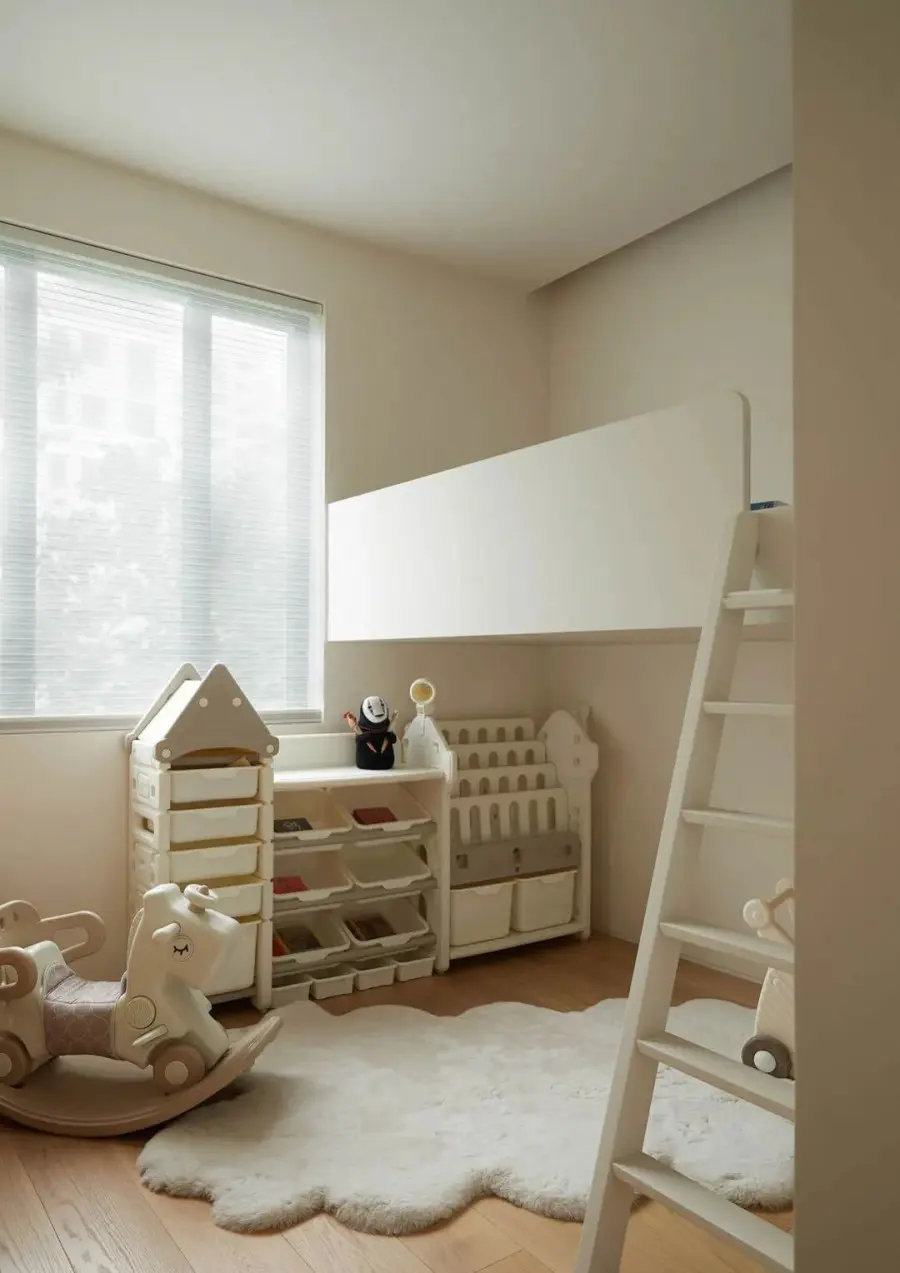 ▲ 儿童房做上下层设计,高效利用空间,睡眠区与娱乐区兼备,选择符合孩子身高的矮柜,方便孩子自己取放绘本和玩具