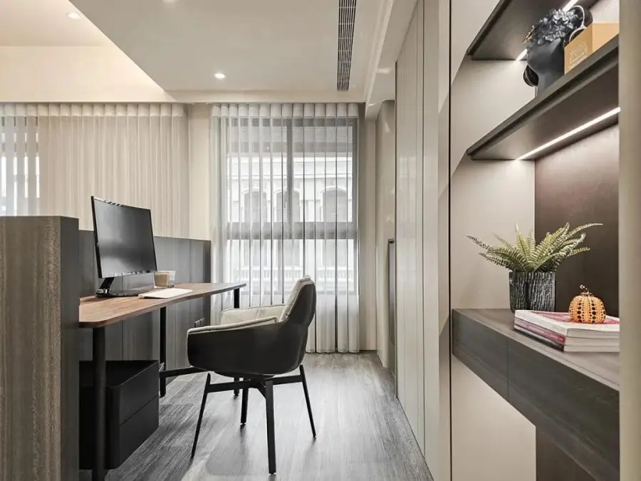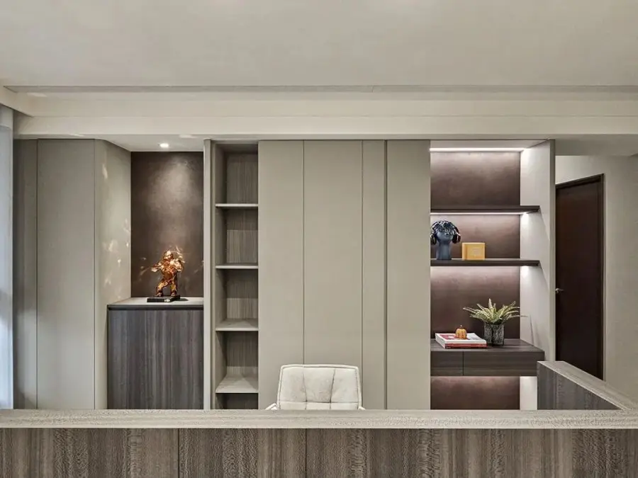 木作矮墙以开放式的手法,以小小的转折围塑书房,不仅空间不封闭,还可以与其他功能区保持互动。