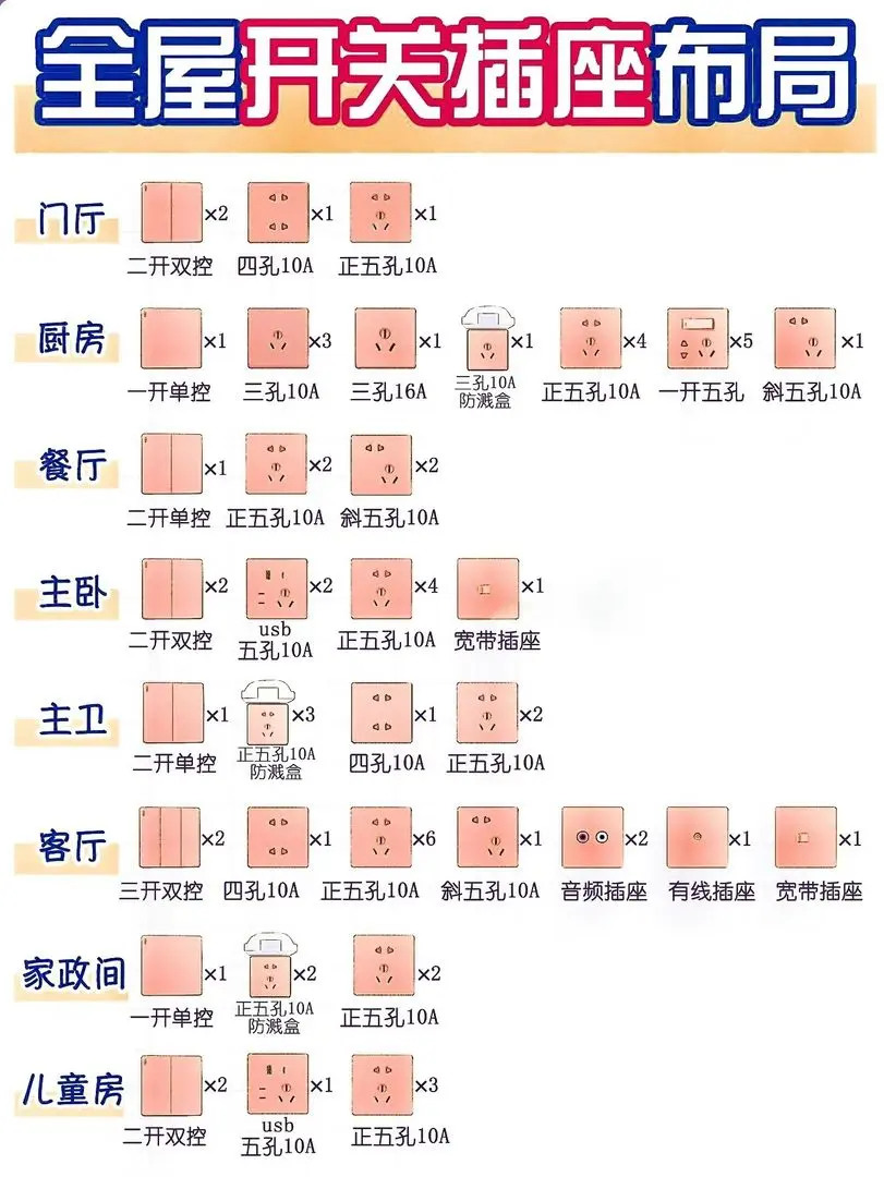 首页 > 装修常识 > 超详细全屋插座布局~