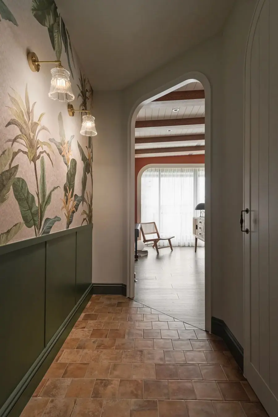净空进门视野与路径,而相依鞋衣柜旁的圆拱门