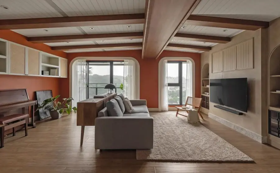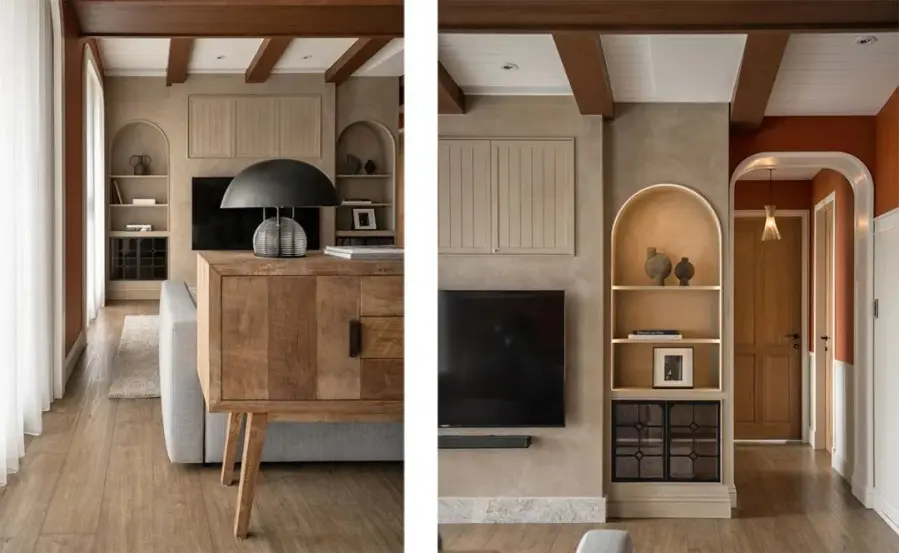 米棕电视墙景跳脱泰奶橘的热情、米白的优雅