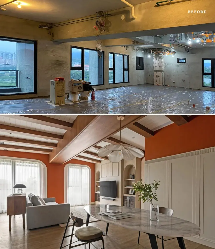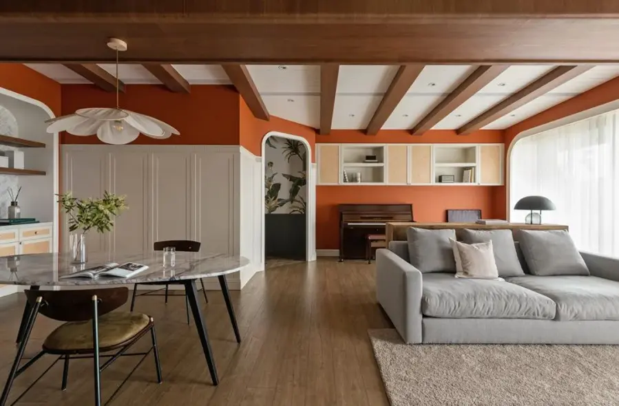 沙发也顺势避开梁下位置,灵活平衡了视觉