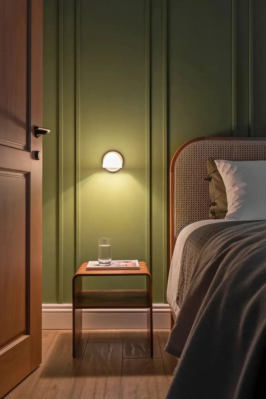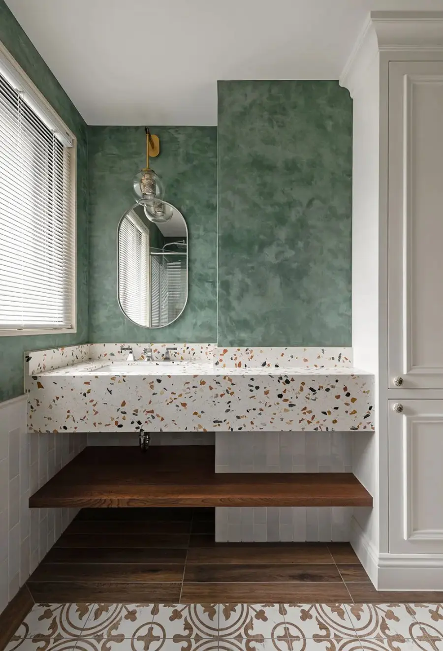 带有手刮纹理墨绿涂料相续渲染着主卫浴