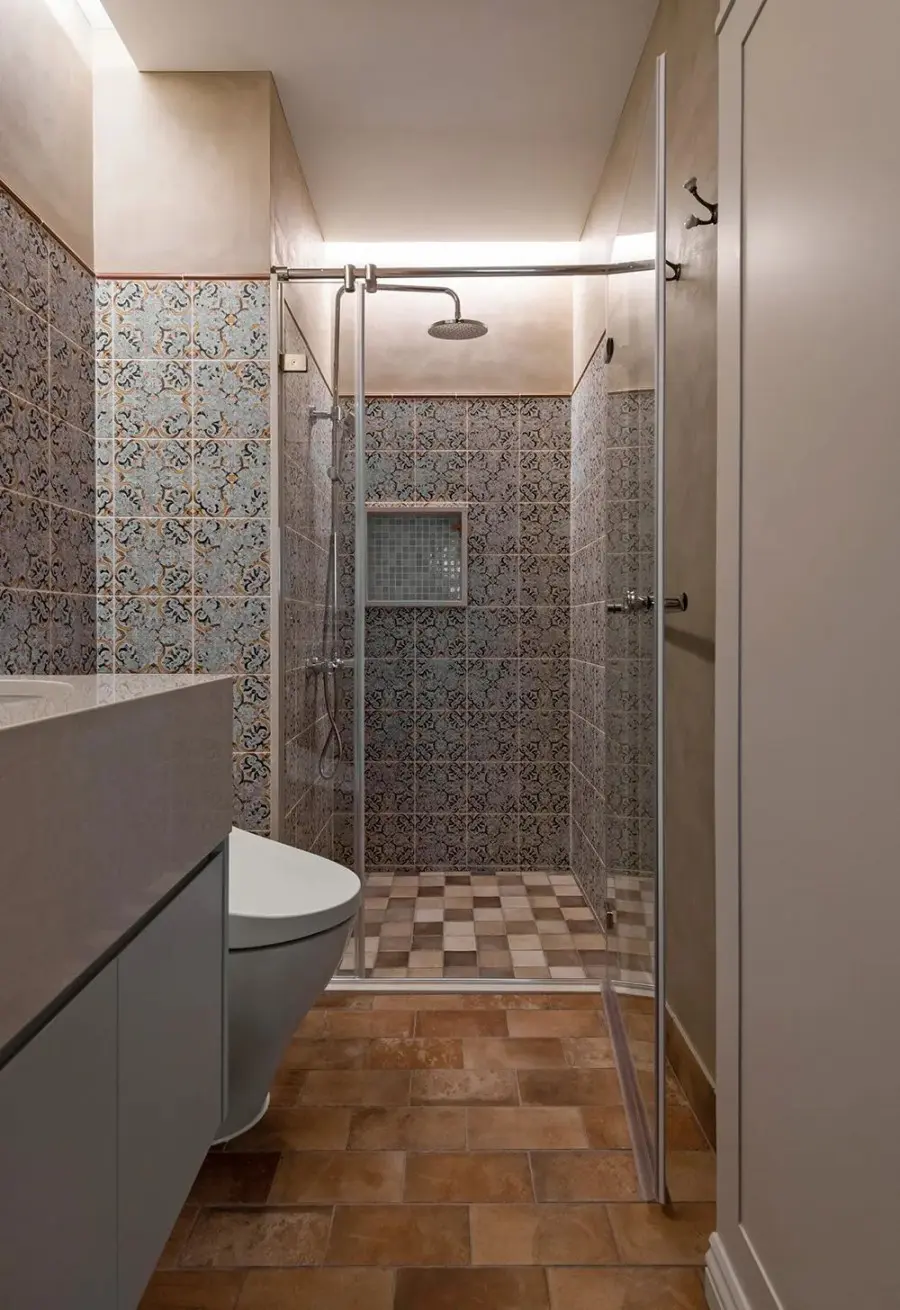 揉入活泼水磨石、典雅花砖、温润木纹砖、拼贴马赛克