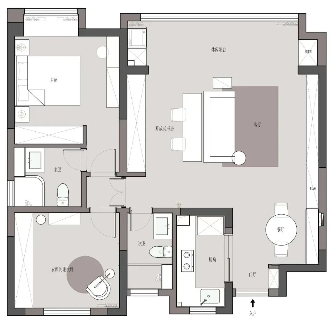 动线打开,以生活的连贯系统为依据,客厅和餐厅作为中心,最大化利用空间,减少不必要的隔断,使得家庭活动更加自由流畅。