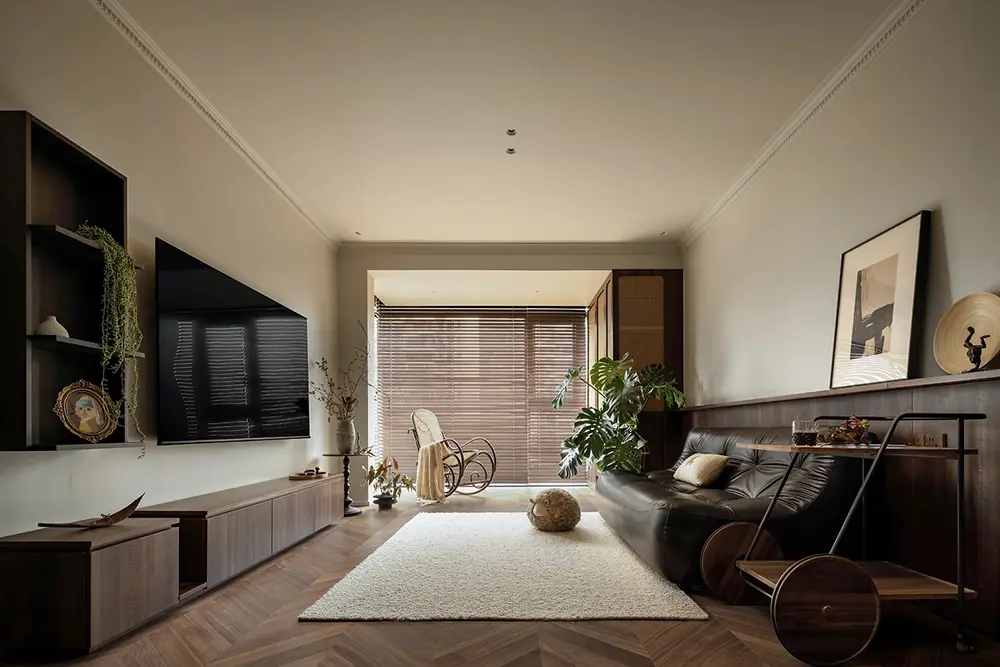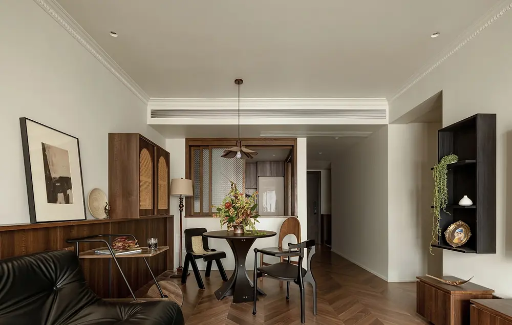 【设计案例】80㎡中古风,胡桃木色打造安逸的静谧之家!