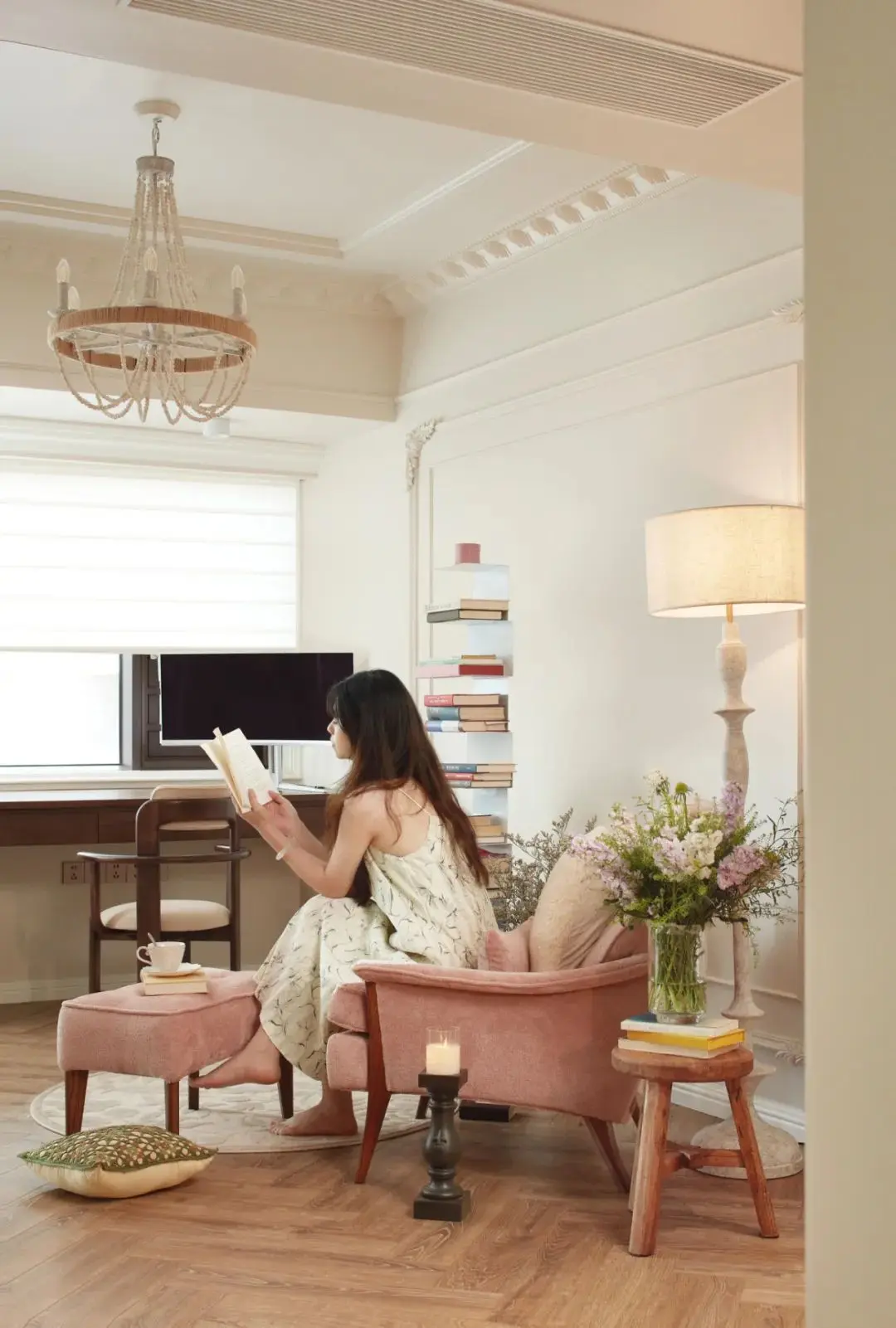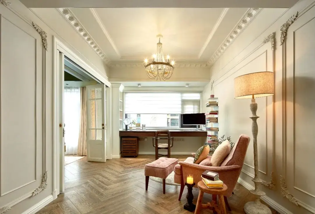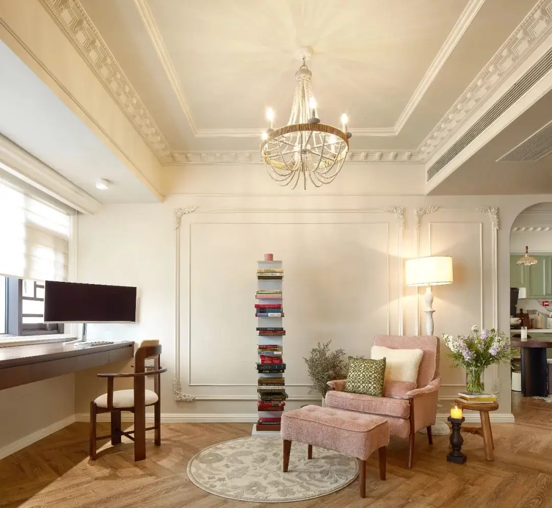 精致的法式PU线条搭配简约吊灯,加上舒适的家具布局以及个性化的装饰细节无论是想要放松身心的休闲时刻,还是需要专注工作和学习的时间,这里都能为你提供一个完美的环境。