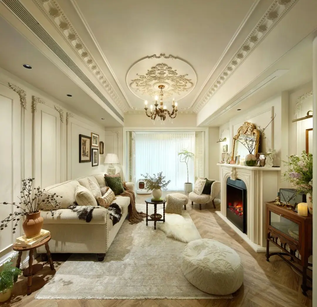 本案例融合了田园温馨与法国优雅,强调自然与舒适的结合,使用经典的法式元素,繁复的装饰图案和柔和的色调,以及自然材料的家具。置身于法式田园风格的室内,每一处细节都透露出对大自然的深深热爱。这不只是一种装饰手法,它是对生活的一种态度,将田园的宁静与法式的优雅完美融合。