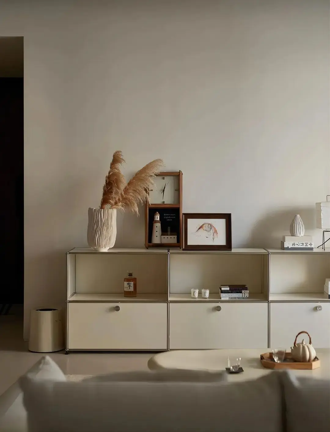 USM边柜靠墙摆放,赋予软装搭配更多的发挥空间,以精美物件装点出独一无二的生活仪式感。