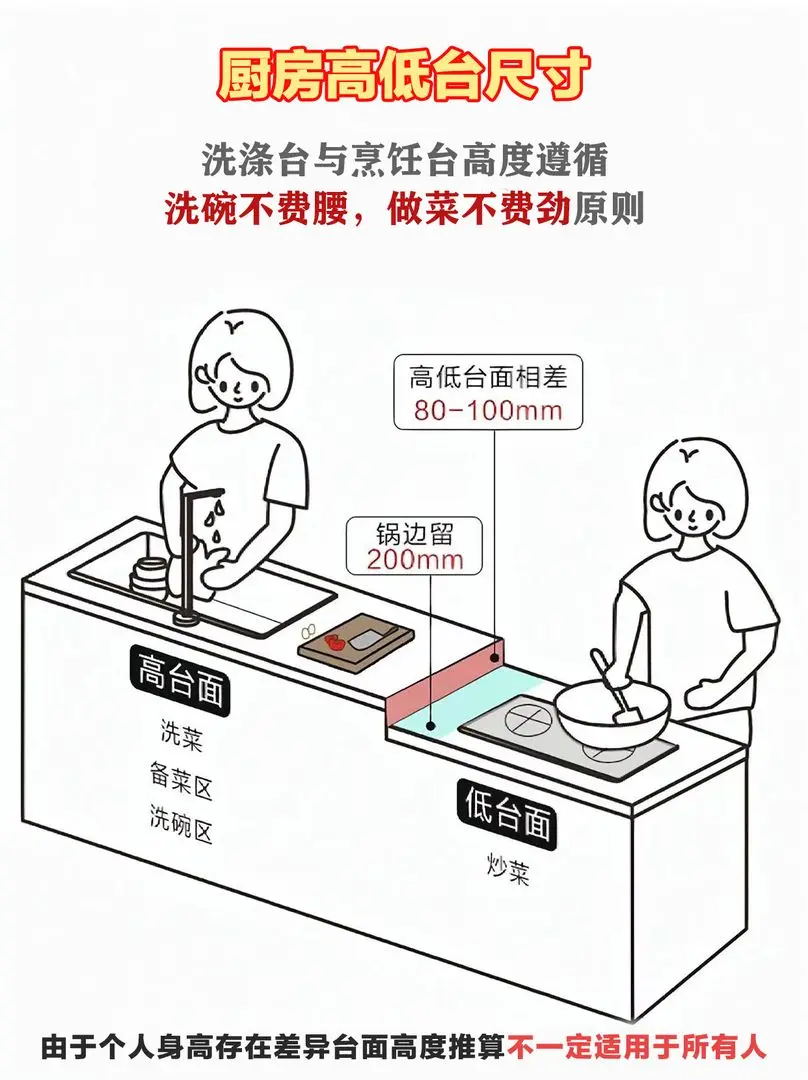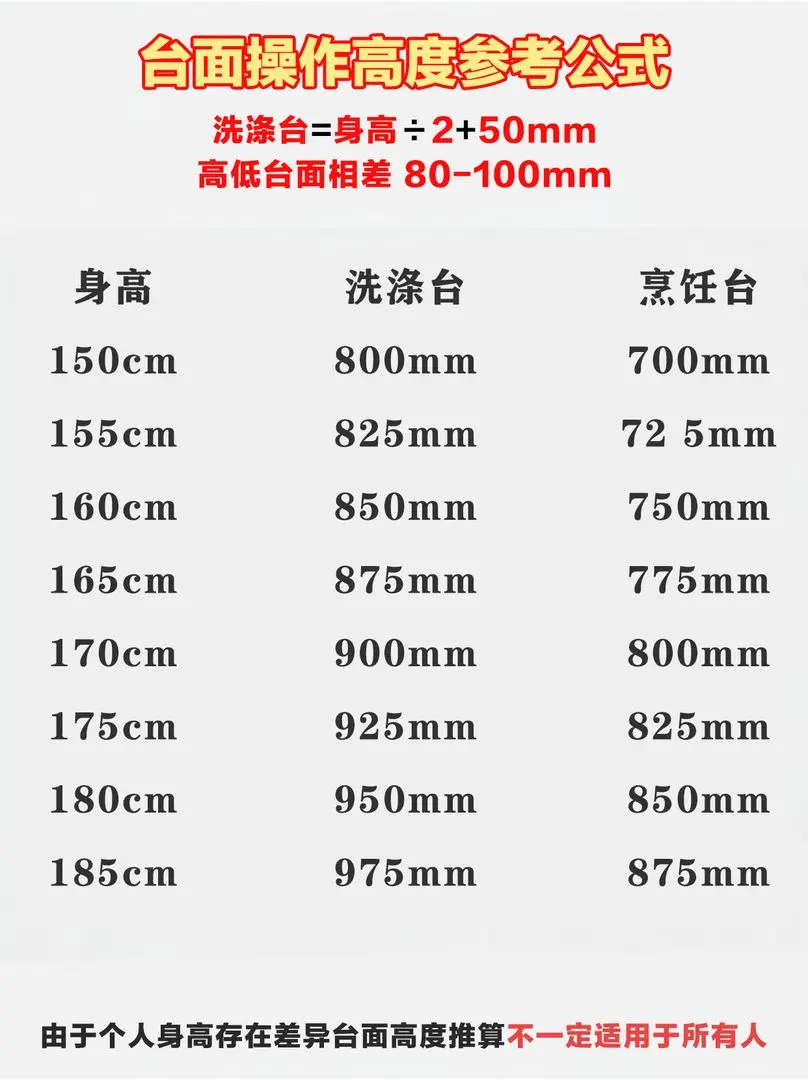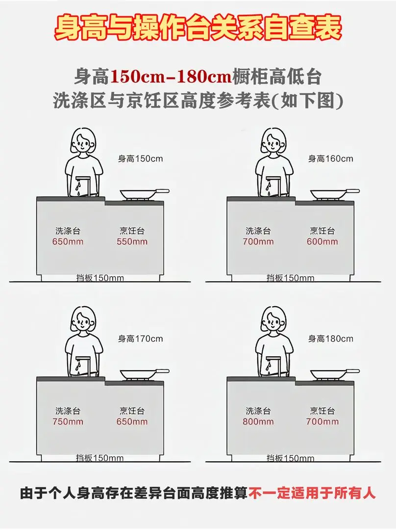 一般橱柜的高度为820-850mm,如果你家里的橱柜高度低于820mm的话,可能洗菜的时候,需要弯腰,那样子做饭会很累的,所以建议不要做太矮了。另外如果你家人身高都很高的话,建议做850-880mm的,这个橱柜的高度要根据家人的身高来定哦。