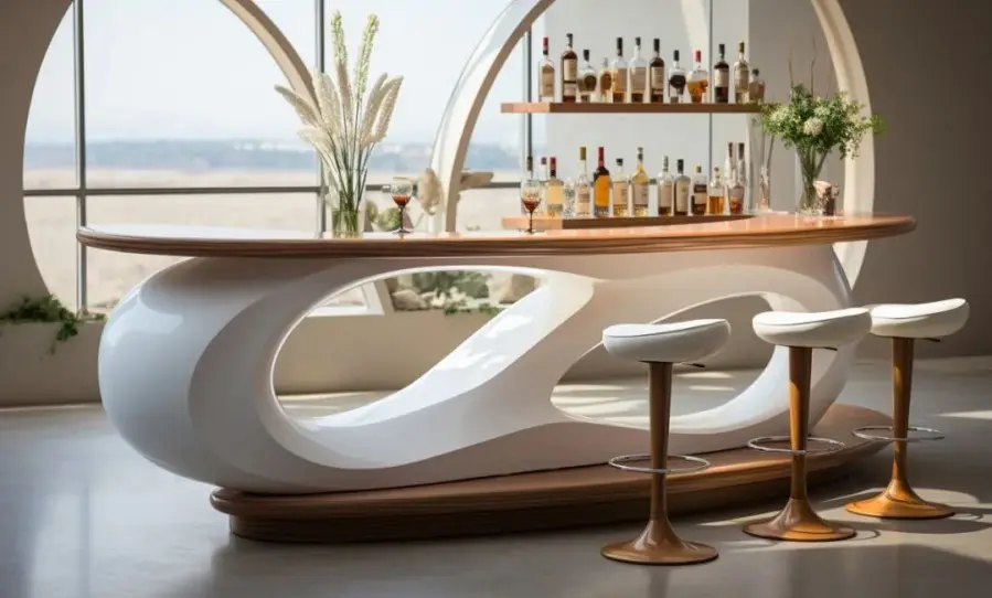 吧台最开始是用于酒吧等娱乐场所,是指靠近酒柜周围的一排桌子。下方都是排满了高脚凳,对年轻人来说是个潮流,因此吧台这种形式也深受年轻人的追捧喜爱。