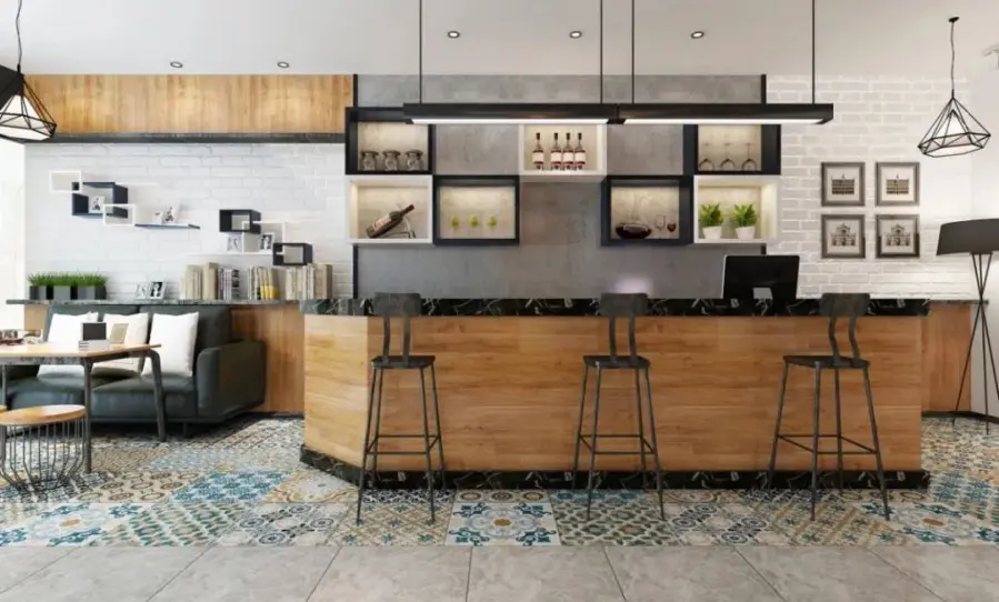 木材比较大众,层次多,如果使用廉价木材制作吧台,不仅不会让人感觉亲切、温暖,反而让人感觉廉价、乏味。