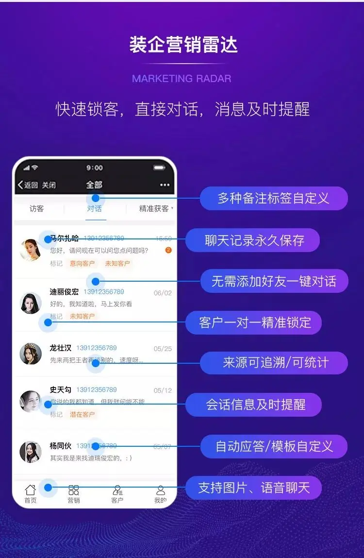快速锁客,直接对话,消息及时提醒