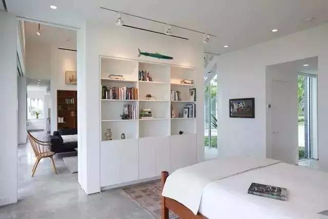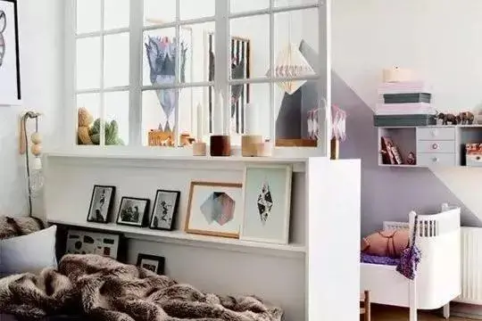 柜子隔断作为最经济快捷的隔断方式,被大量的用于家装中。不仅起到了隔断的作用,还能增加室内的储物空间,简单的装饰也能把它改造成卧室的一道风景。