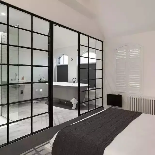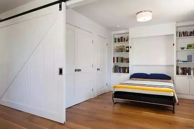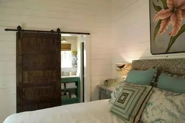 谷仓门的隔断比较常见,多用于浴室、卧室、厨房等,除了使用起来方便,它本身所具有的艺术美感也是其他隔断门所不具备的。