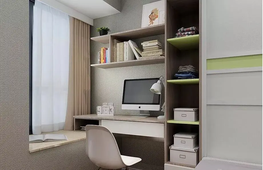 与书柜结合,空闲时可以爱人一起看书学习,还不担心相互打扰。