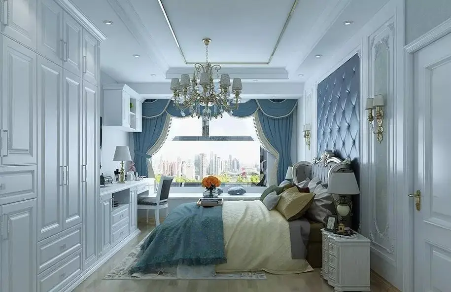 宽敞的飘窗添加户型垂吊落地窗帘,凸显主人优雅的气质。